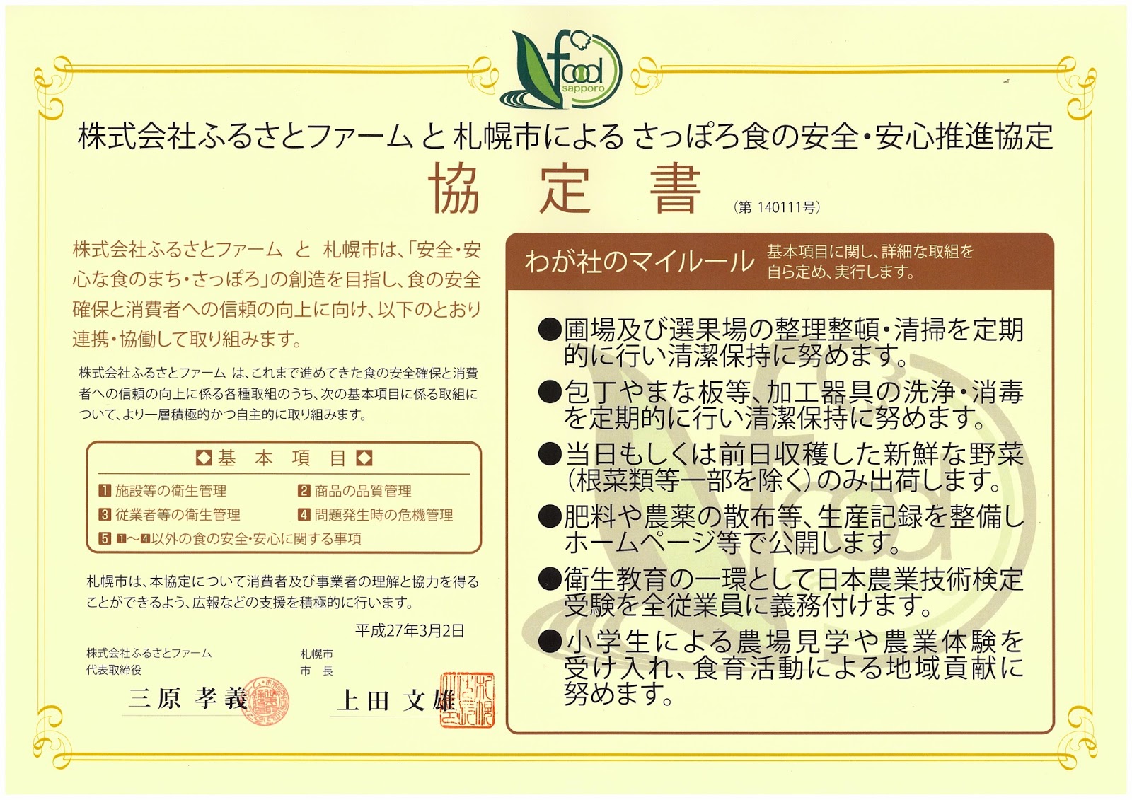さっぽろ食の安全・安心推進協定