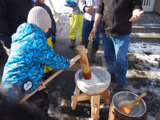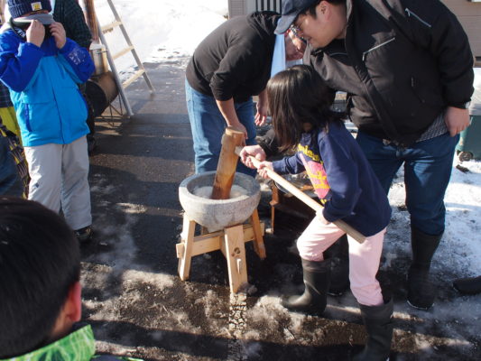 子どもたちとの餅つきがふるさとファームの仕事納めとなります