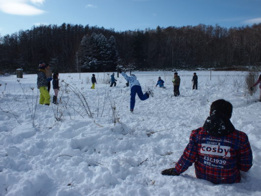 お餅をいっぱい食べた後は恒例の雪合戦です
